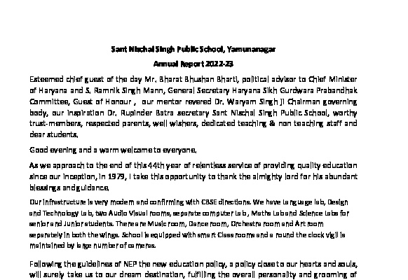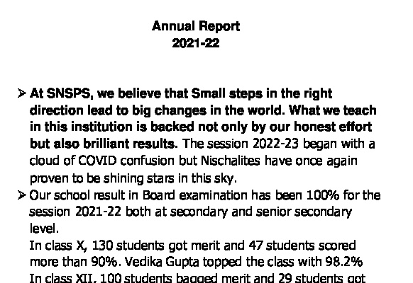 Annual Report Sant Nischal Singh Public School Download Reports Annual Report 2022-23 Annual Report 2021-22